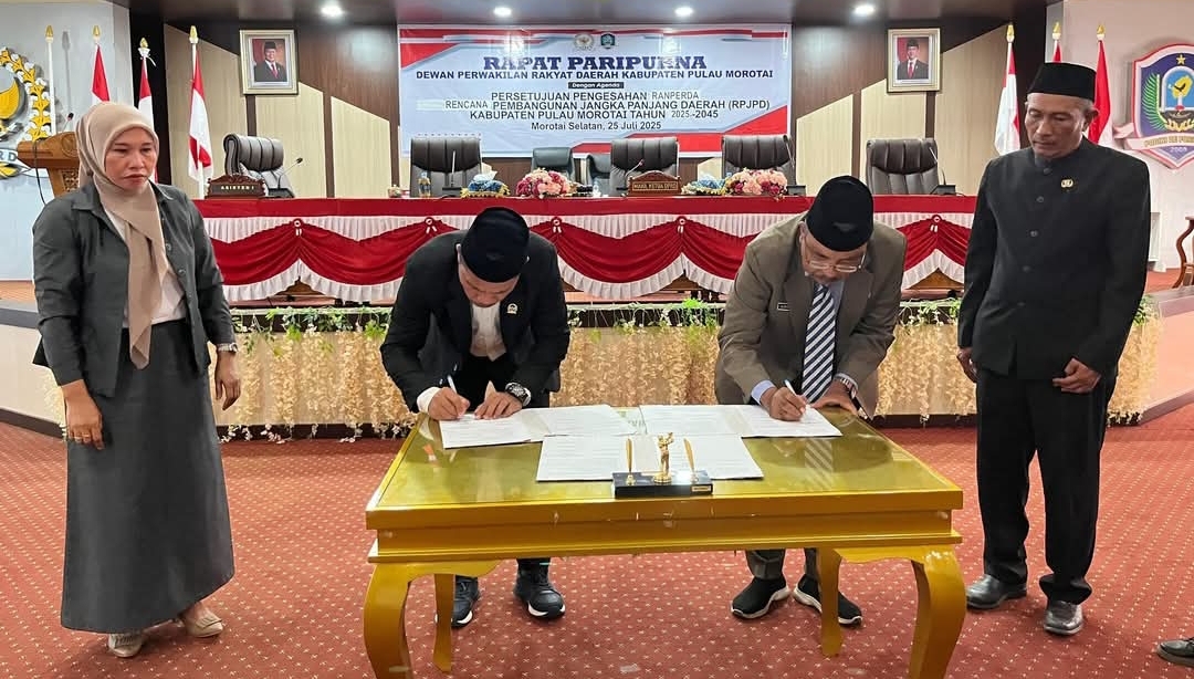 Pengesahan ini menjadi tonggak penting bagi arah pembangunan Morotai selama dua dekade ke depan, dengan visi ambisius menjadikannya “Simpul Ekonomi Indonesia Pasifik yang Maju, dan Berkelanjutan.”