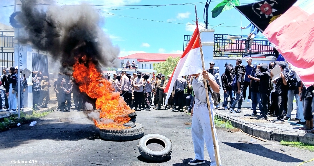 Tolak Tambang dan Sengketa Lahan, Mahasiswa Bakar Ban di Kantor Bupati Morotai